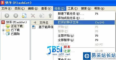 用戶在" BT搜索"中搜索"XXXX",得到一個BT種子;然后從軟件主界面的"任務"菜單下單擊"打開BT種子文件"命令,如圖2所示。在關聯性方面FlashGet在關聯性方面做得不錯,當系統中會未安裝其他BT下載軟件,FlashGet1.8會自動與此種子文件關聯,雙擊種子文件也可打開FlashGet1.8的BT下載界面。