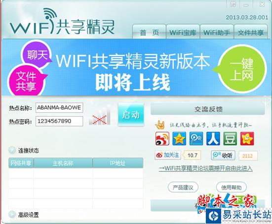 WIFI共享精靈是一款基于PC無線網卡應用的無線共享的軟件。通過共享網卡WIFI信號,將筆記本設置成無線路由器,實現(xiàn)WiFi手機及PAD共享上網,無論你走到哪,只要帶著安裝了軟件的筆記本電腦,就能實現(xiàn)即開即用,還可以避免忘帶硬件產品的尷尬,隨身wifi什么的都遜斃了!
