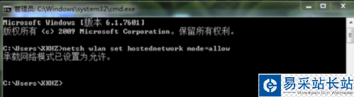 輸 netsh wlan set hostednetwork mode=allow,回車(Enter鍵)