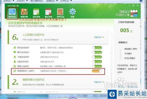 1使用了360的人,查看360局域網防護(ARP)是否關閉,打開360安全衛士首頁,360木馬防火墻—防護狀態—局域網防護(ARP)顯示未開啟,即可