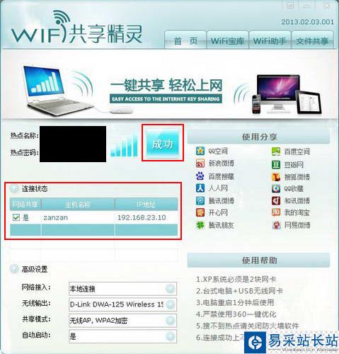 其實我們只需要一臺擁有無限網卡的電腦就可以了,一般來說筆記本都會內置無線網卡,再搭配一個我們今天要介紹的wifi共享精靈就可以創建一個wifi熱點了~