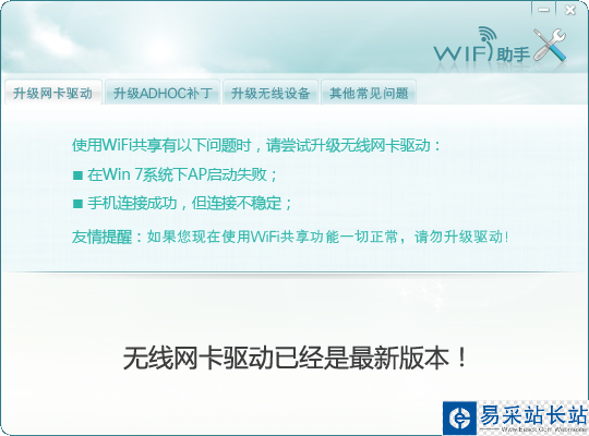 2、win7系統下啟動失敗或者手機連接wifi不穩定,這里我們可以點擊wifi助手選擇升級網卡驅動。