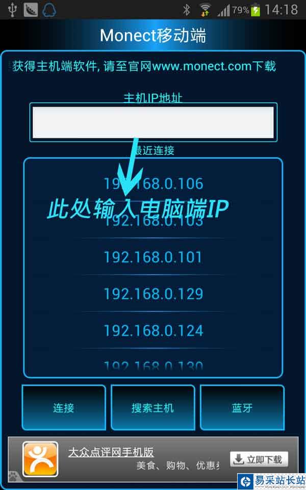 在手機端軟件上輸入上面的IP,然后點擊“連接”即可。