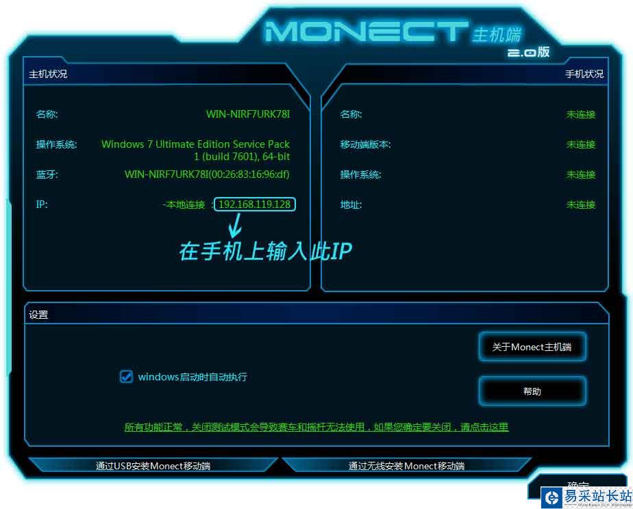 *注:如果您的網域中只有一臺主機安裝了Monect,那么直接點擊搜索主機即可,若您的網域中有兩臺以上的主機安裝了Monect,則需要手動輸入對應的IP地址.