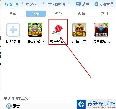 這個(gè)鮮花位置--需要各位用戶打開YY,進(jìn)入頻道, 點(diǎn)擊右下角應(yīng)用中心