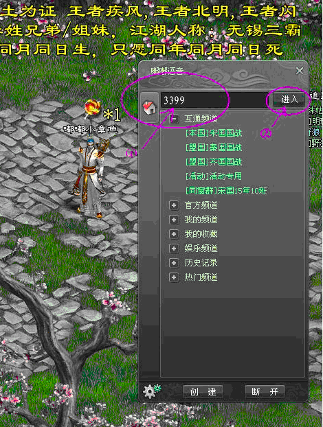 登陸嘟嘟語音后,在界面最上方可以看到“頻道輸入框”,在這里輸入您要去的頻道號碼,然后點擊“進(jìn)入”按鈕,或者直接回車即可進(jìn)入該頻道。(如圖)