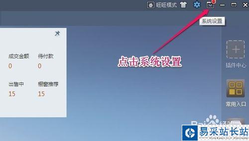 成功登陸之后,點擊右上角的系統設置按鈕,哈哈,這個隱藏得確實有得深。大家也可以點擊阿里旺旺模式去設置,也可以同步的。