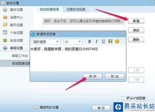 如果想添加新的自動回復內容的話,點擊“自動回復短語”,然后再點擊新增,最后確定一下就可以了。