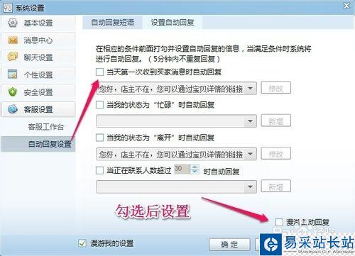 然后根據你的店鋪情況,設置好哪些情景使用自動回復,也可以自行再修改一下。