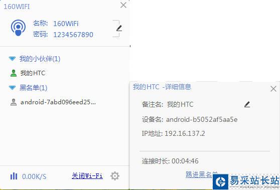 新加入的小伙伴,160WiFi會有接入提醒,加進來之后,點擊用戶名,可以看到他的詳細信息,設備名、IP地址、連接時常,還可以自己設置備注名,如果不是自己的小伙伴,可以果斷“踢進黑名單”,,他想蹭網的小心思就能扼殺在搖籃里了。