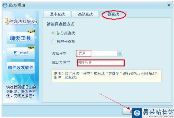要想找到買家比較集中的對方,還可以利用群查找功能,利用玩具供應商們比較集中的旺旺群去查找。