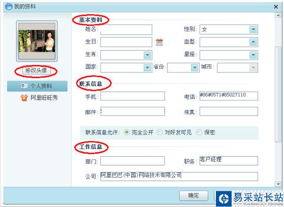 2、在彈出的窗口中修改您的個人資料,如姓名,性別,職業等,然后點擊"確定"按鈕即可: