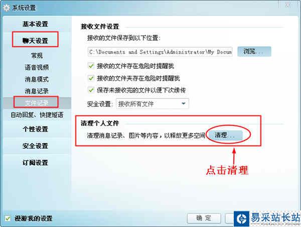 2、選擇聊天設(shè)置—文件記錄—清理個人文件,點擊清理。
