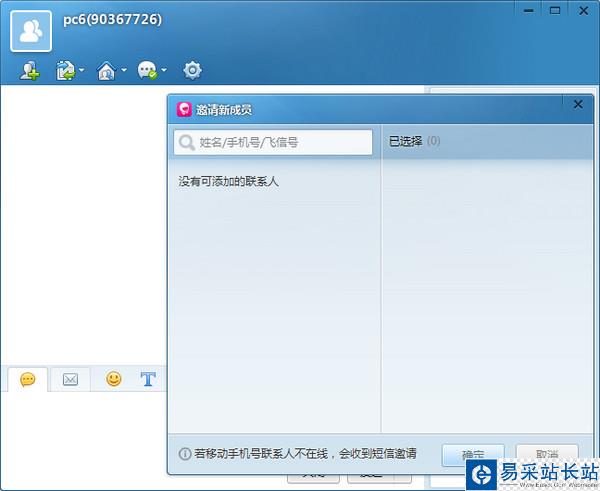 2、和QQ一樣,飛信2014也有群組和討論組功能,如果需要群發短信,可以直接將聯系人邀請到討論組或者群組即可,具體步驟如下: