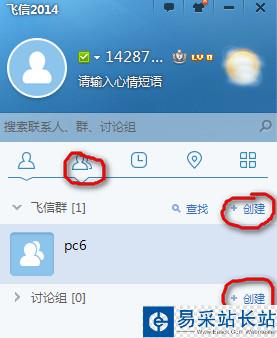 然后在飛信中創建一個討論租或者群組