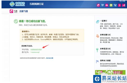 注冊(cè)成功之后會(huì)顯示您的手機(jī)號(hào)和通行證號(hào)