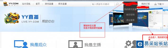 4、登陸后鼠標放在登陸賬號上會提示“我的游戲直播”