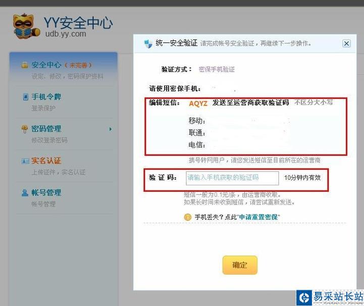 3、通過手機方式驗證,編輯短信發送,獲取手機的驗證碼,填入驗證碼。