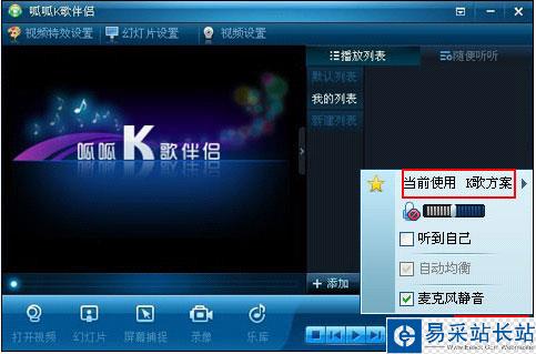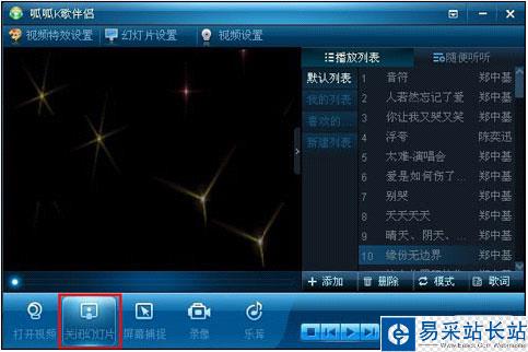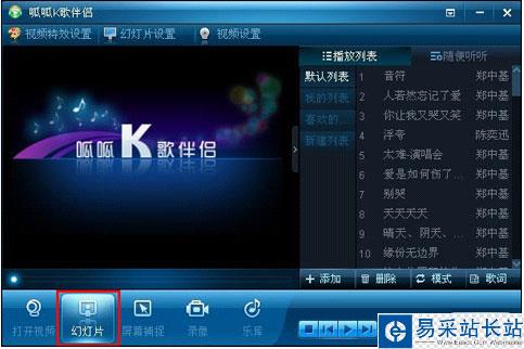 2、如點擊“幻燈片”可進入幻燈片設置里面進行調試,下圖:a. 首先打開K歌伴侶,點擊“幻燈片”。如下圖所示: