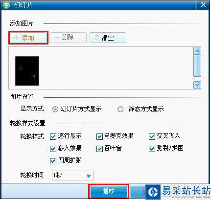 b. 點擊添加您所要播放的圖片,點播放即可。如下圖所示: