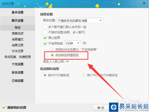 然后再勾選中【自動鎖定阿里旺旺】這個選項,如下圖所示。