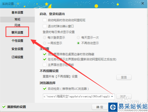 這時候就打開了【系統設置】窗口,單擊窗口左側的【聊天設置】選項。