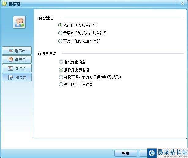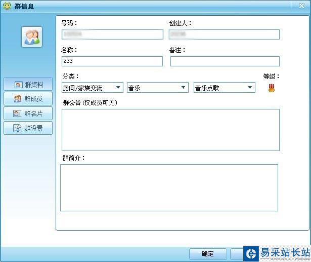 1) 群資料:顯示好友群的ID號碼,群主和管理可修改群名稱、分類、群公告的信息,其他成員可查看。