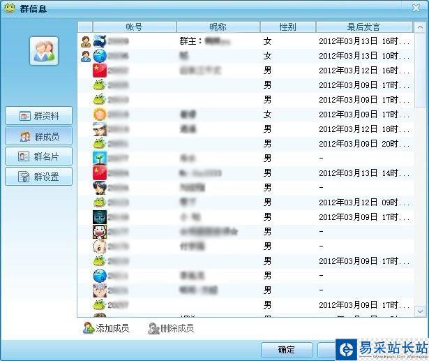 2) 群信息:顯示好友群內所有成員信息,群主可添加群管理、添加/成員,管理可以添加/刪除成員,其他成員可以查看。