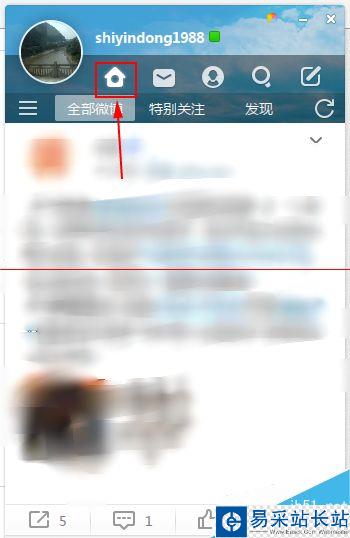 1、小編也是剛剛使用微博桌面2015,對于很多功能也還是剛剛了解,點擊上方的小房子圖標,進入微博主頁。