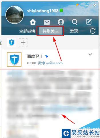 5、設置好特別關注之后,就可以在特別關注里邊看到好友的更新。因為微博我們關注的好友會非常多,有可能會錯過很多重要信息,設置好特別關注以后,就可以從你的好友當中挑選一些比較重要的進行額外關注。
