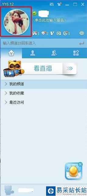 1、假如你修改自己的馬甲也就是你的YY昵稱,那么你直接點擊自己的YY頭像。