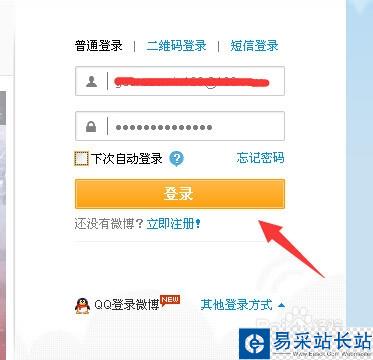 接著來到新浪微博的登陸窗口,輸入自己的新浪微博賬號和登陸密碼,然后再點擊下面的”登陸“按鈕。(如下圖)