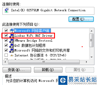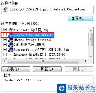 1、將網絡連接中所有網卡屬性中的liebao wifi nat driver不勾選點確定,退出獵豹WIFI重新打開,試試有沒有網。
