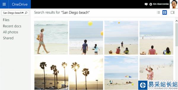 新版OneDrive中能夠針對圖片將其自動分類為“截圖”和“相機輸入”文件夾,也可以直接將Outlook.com收件箱的圖片直接保存到OneDrive上。 而在新版中最有趣的功能莫過于搜索功能,可以根據文件內容關鍵詞來搜索PDF文件,可以通過時間、位置和提取的文本來搜索圖片,還可以通過使用自動標簽技術能夠對圖片中內容進行標記,比如說“狗”或者“沙灘”,這樣就能更加輕松的找到你所需要的圖片資料。