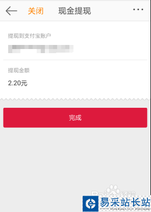 12、確定提現(xiàn)到支付寶賬戶,然后選擇完成,提現(xiàn)成功