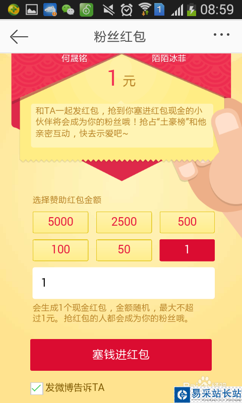 7、選擇紅包金額,然后選擇塞錢進紅包