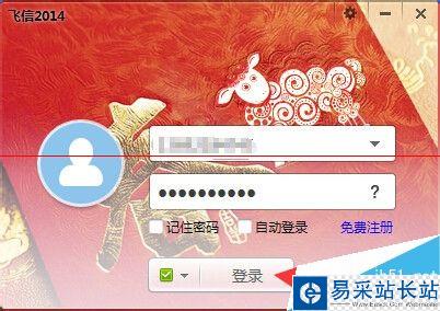 2、來到飛信的登陸窗口,輸入自己的飛信賬號和登陸密碼,然后點擊登陸。(如下圖)