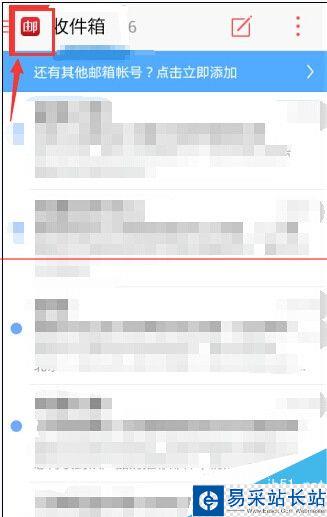 1、在手機(jī)上打開郵箱大師客戶端,然后完成賬號登陸之后,再點(diǎn)擊左上角的“郵箱大師圖標(biāo)”。(如下圖)