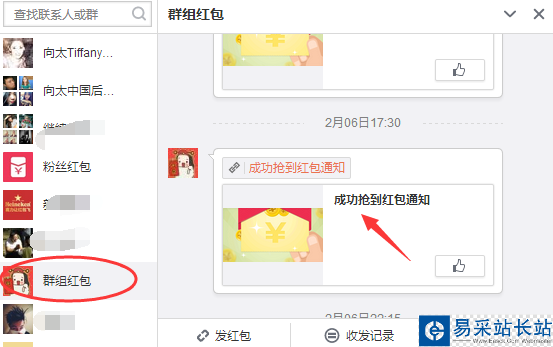 在搶到紅包以后,群組紅包會通知到大家已成功搶到紅包,點擊可以查看紅包詳情。