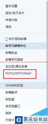 2、單擊“郵箱中心”,此時會看到左側有一項 POP3/SMTP/IMAP,,單擊這一項,