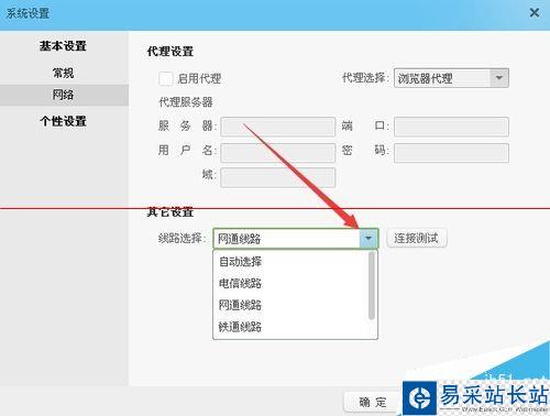 4、在打開的網絡設置窗口中,點擊線路選擇的下拉菜單,在彈出菜單中選擇你的網絡提供商