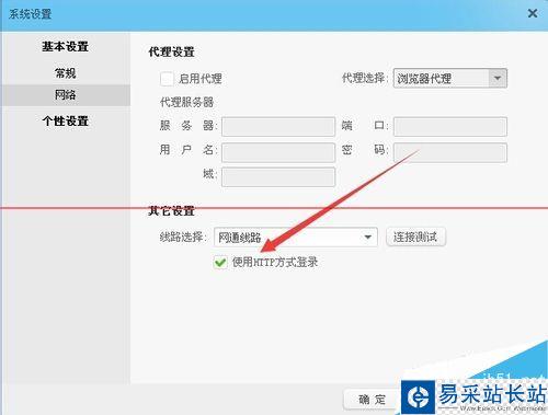 6、點擊確定按鈕,返回到網絡設置界面,然后選中“使用HTTP方式登錄”前的復選框,最后點擊確定按鈕保存退出,試一下,這樣再登錄阿里旺旺就可以與原來一樣快速了。