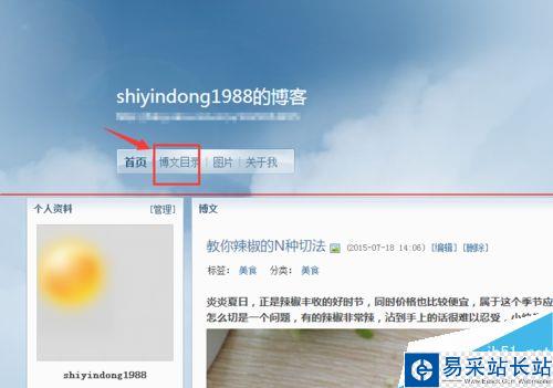 1、進入個人博客的首頁,在最上方可以看到“博文目錄”選項,點擊進入。