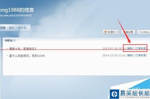 5、打開回收站,可以看到你之前刪除的博文,在右側有刪除選項,再次點擊。