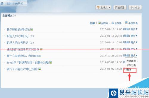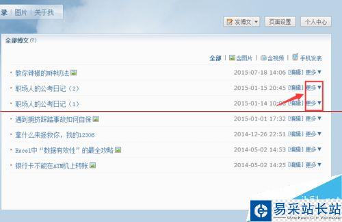 2、在這里你可以發現你所有發布的博文,對于一些你想刪除的博文,點擊右側的“更多”選項。