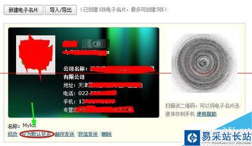 5、保存以后我們就看到名片的效果了,如圖;如果感覺(jué)不太滿(mǎn)意,可以點(diǎn)擊左下角的"修改",也可以直接將其"設(shè)為默認(rèn)簽名",這樣就不用每次發(fā)送郵件時(shí)都收到添加名片了