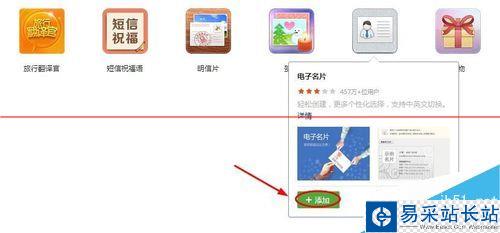 3、如果我們還沒(méi)有添加這款應(yīng)用,那么鼠標(biāo)移動(dòng)過(guò)去以后,我們就可以看到懸浮窗上面有"添加"選項(xiàng),點(diǎn)擊以后該應(yīng)用就可以使用了,如圖