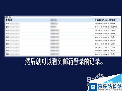 3、進(jìn)入郵箱界面后,在右手邊位置,有個(gè)登錄狀態(tài)記錄。
