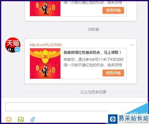 3、轉發5次后,在私信會收到天貓的抽獎地址