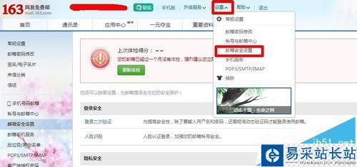 1、點擊中上,“設(shè)置”中的“郵箱安全設(shè)置”,如圖